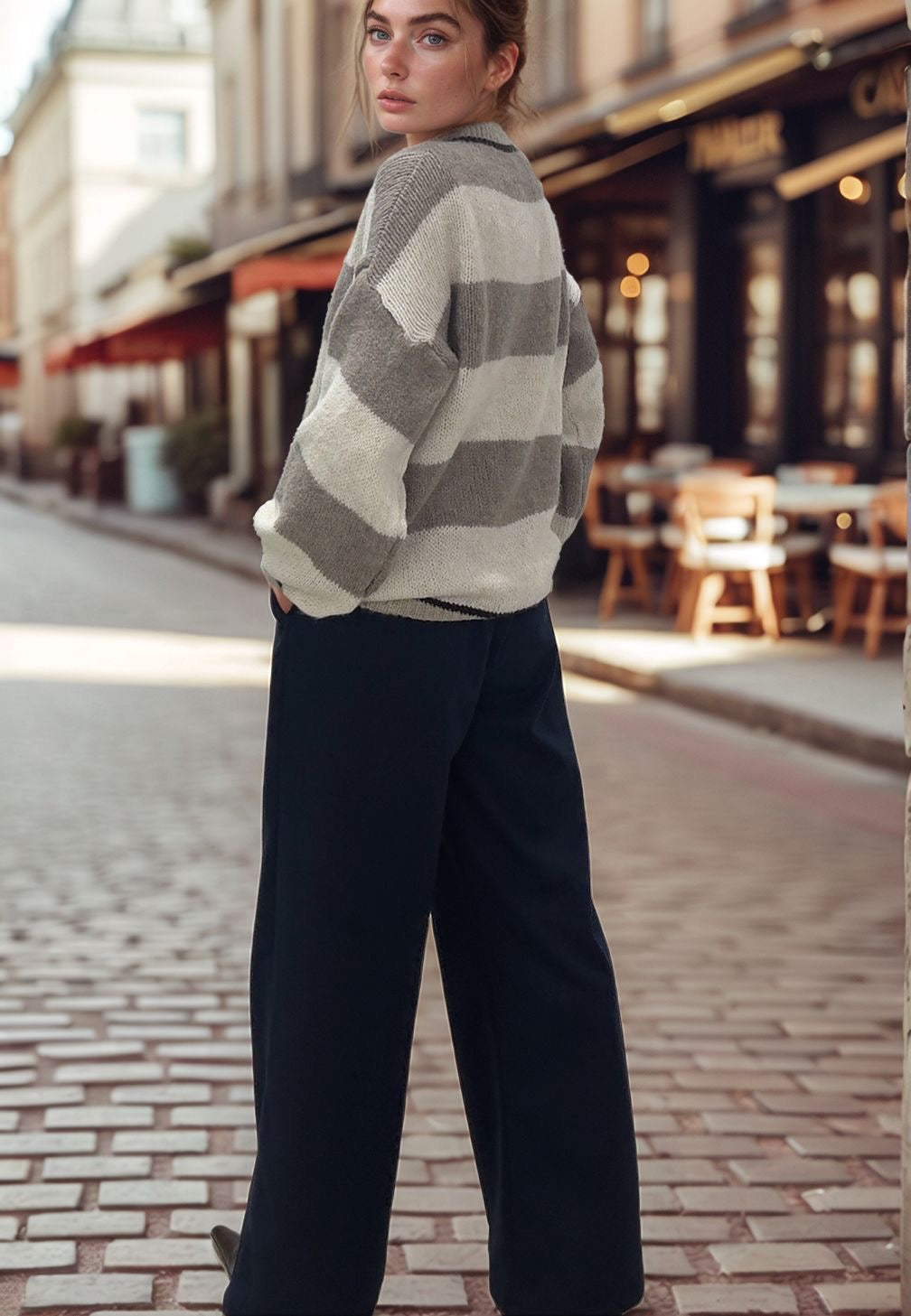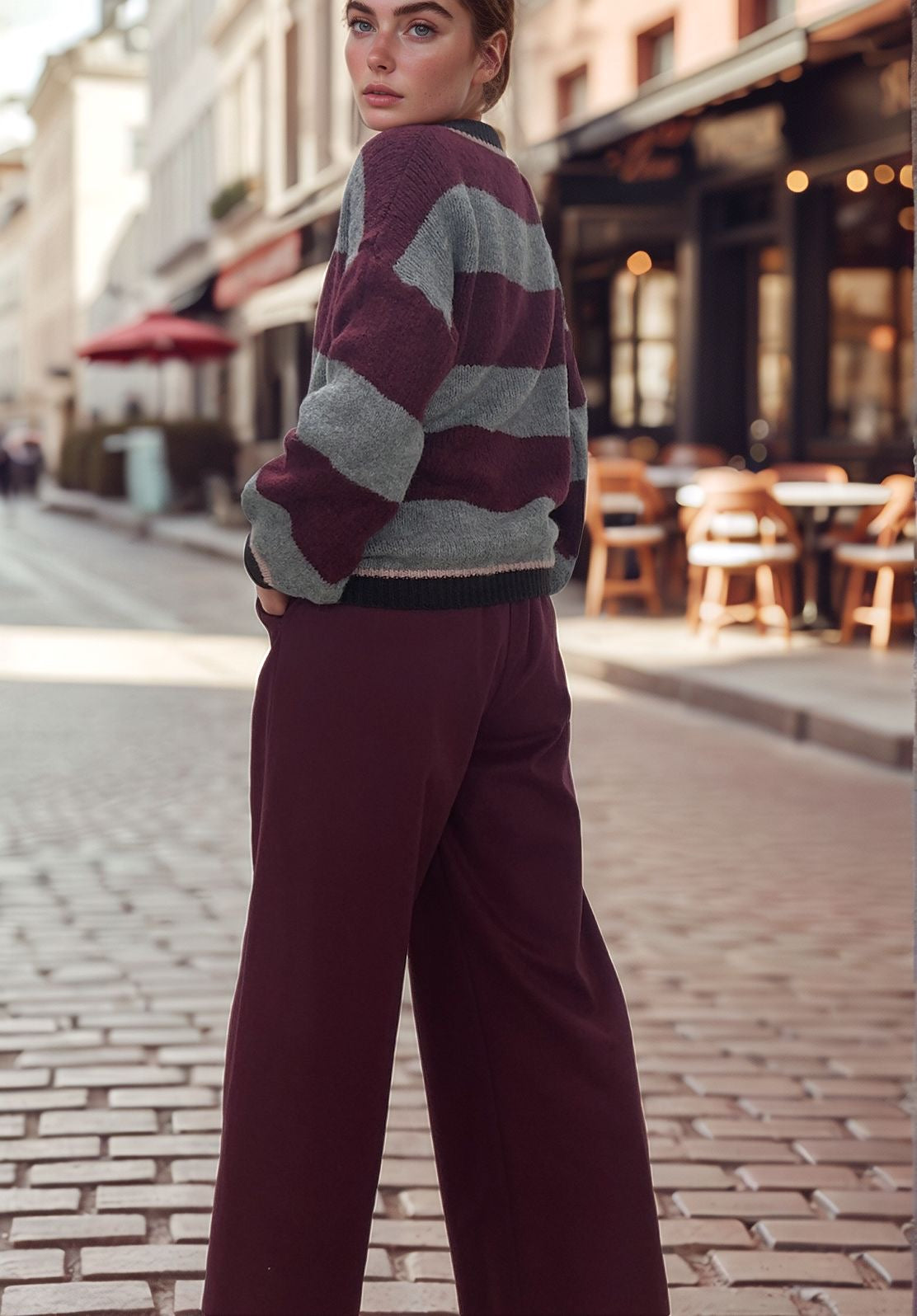 Calças com elástico no cós e bolsos, tamanho único veste até L, muito confortáveis, tem elastano.
