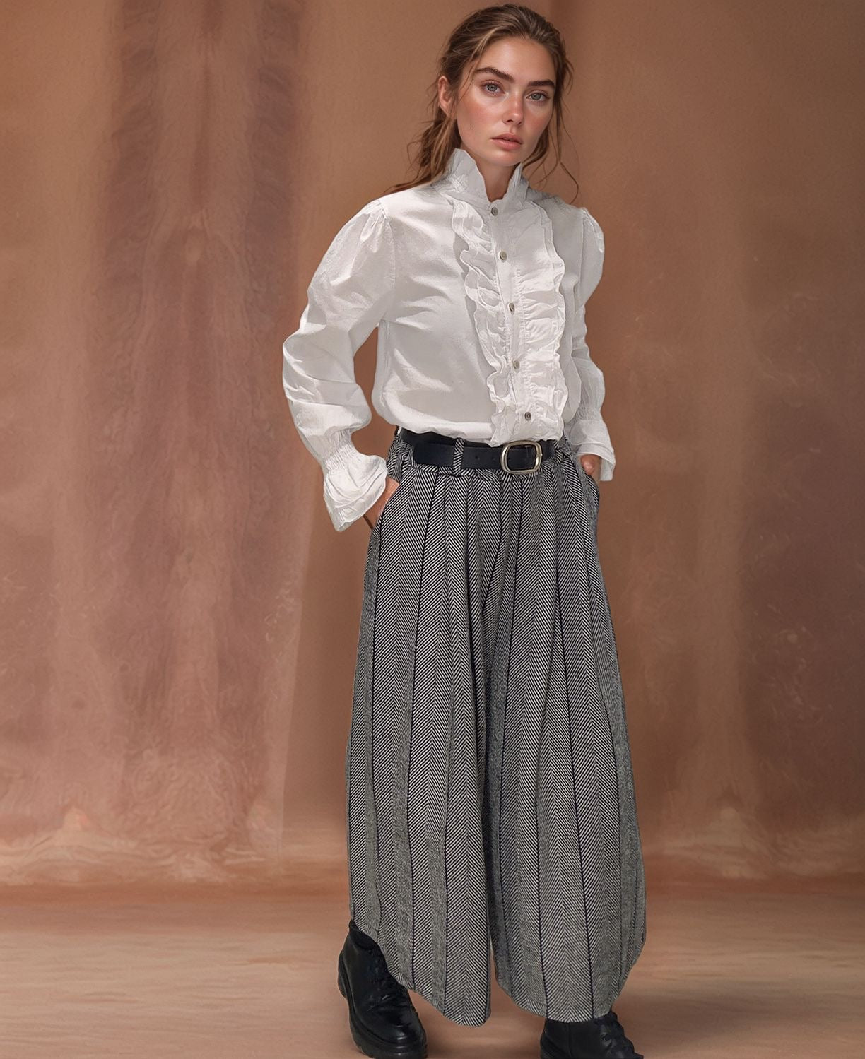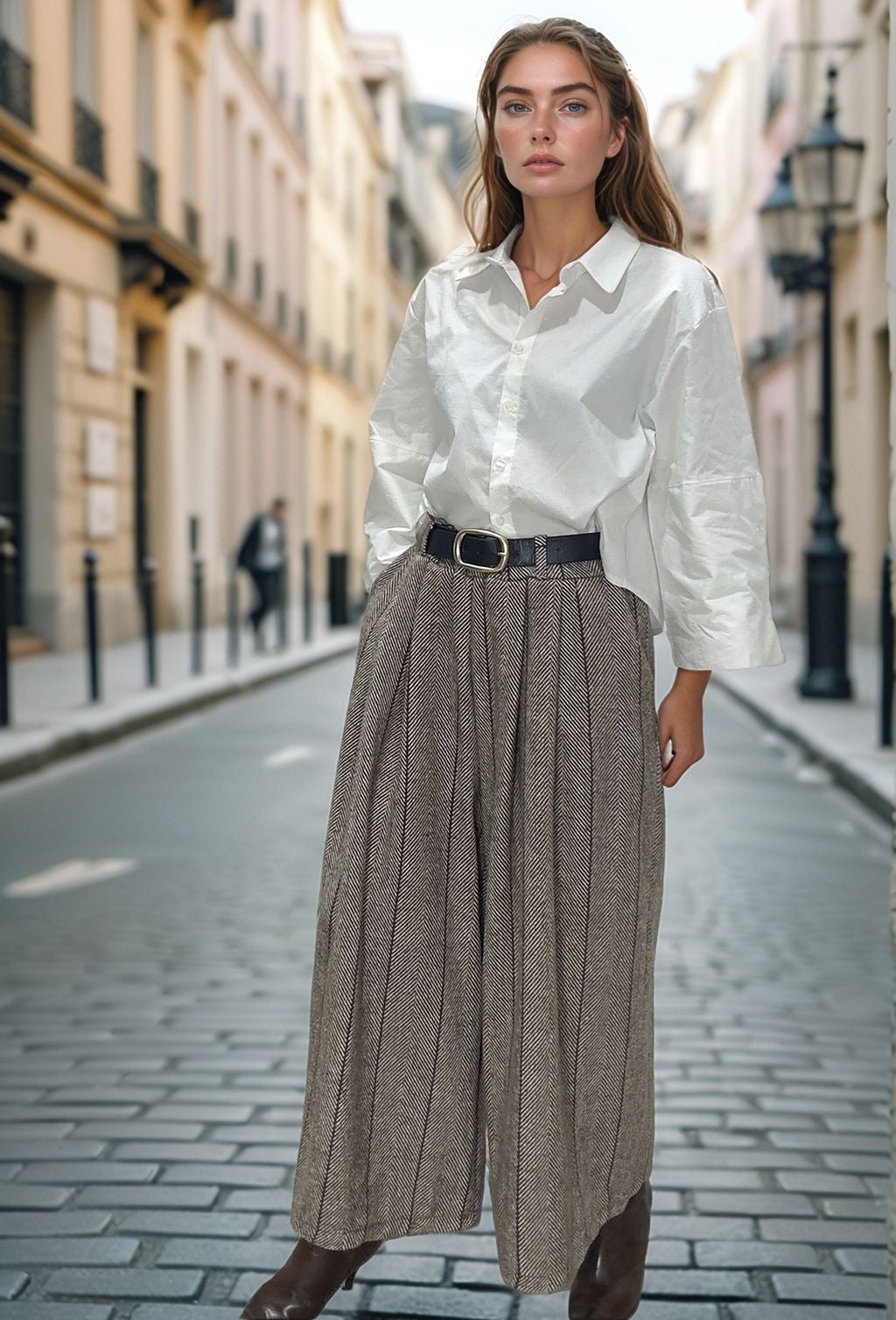 🖤 Calças Culotte em Tweed Herringbone, Sofisticação Inverno 🖤